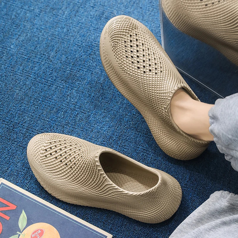 A sleek blend of sculptural form and function, this foam runner redefines casual footwear. Textured grip, structured sides, and futuristic styling deliver standout presence and all-day ease.