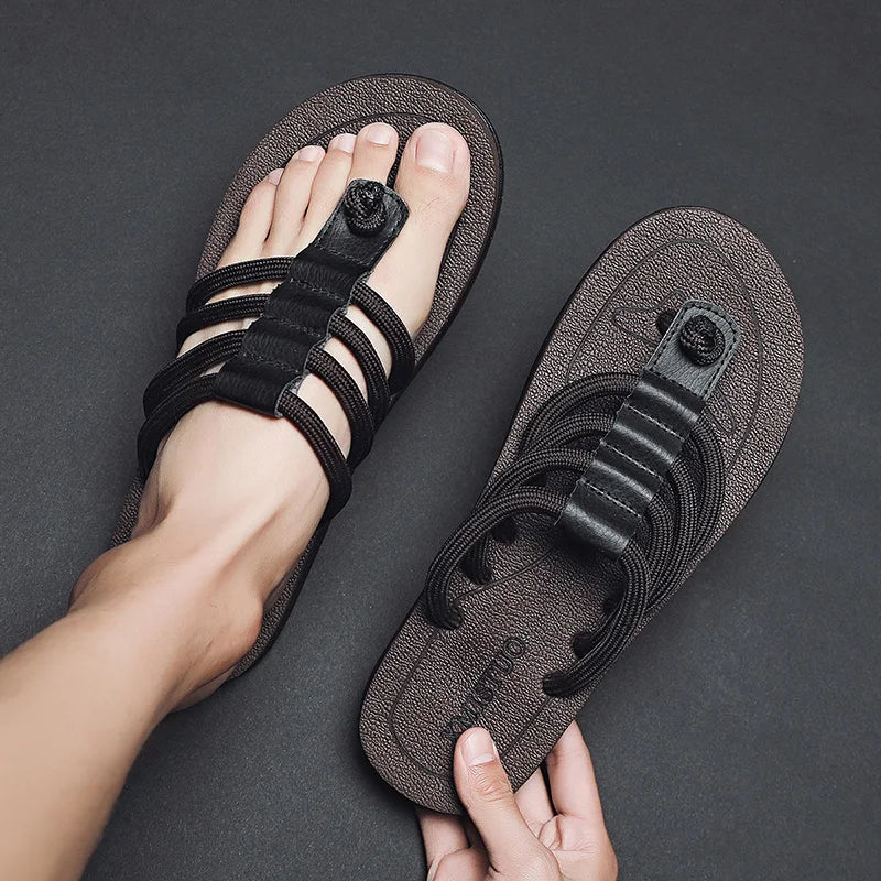Distinctive rope detailing meets cushioned comfort in this elevated design. With its supportive sole and carefully structured straps, it's the perfect choice for warm days spent on the move.